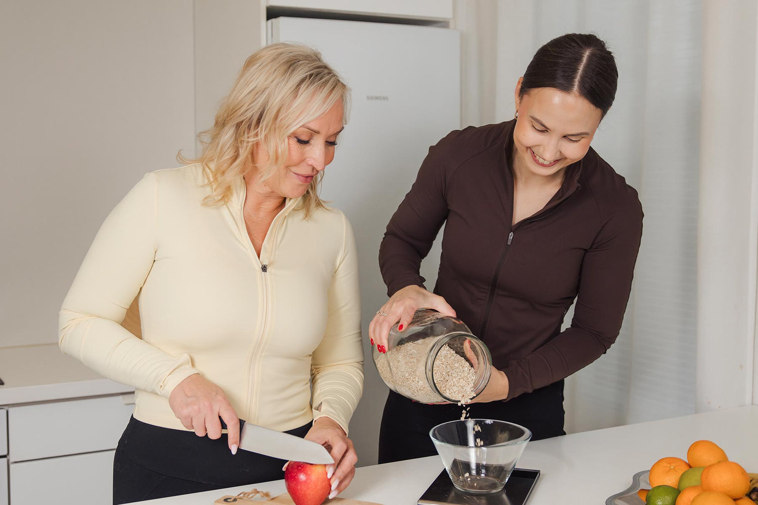 Valmennukseen kuuluu gynekologin luento hormonikorvaushoidosta, jossa käsitellään sen hyötyjä, mahdollisia riskejä ja vaikutuksia kehoon. Valmentajamme osaavat huomioida hormonikorvaushoidon vaikutukset treeni- ja ravinto-ohjeissa.