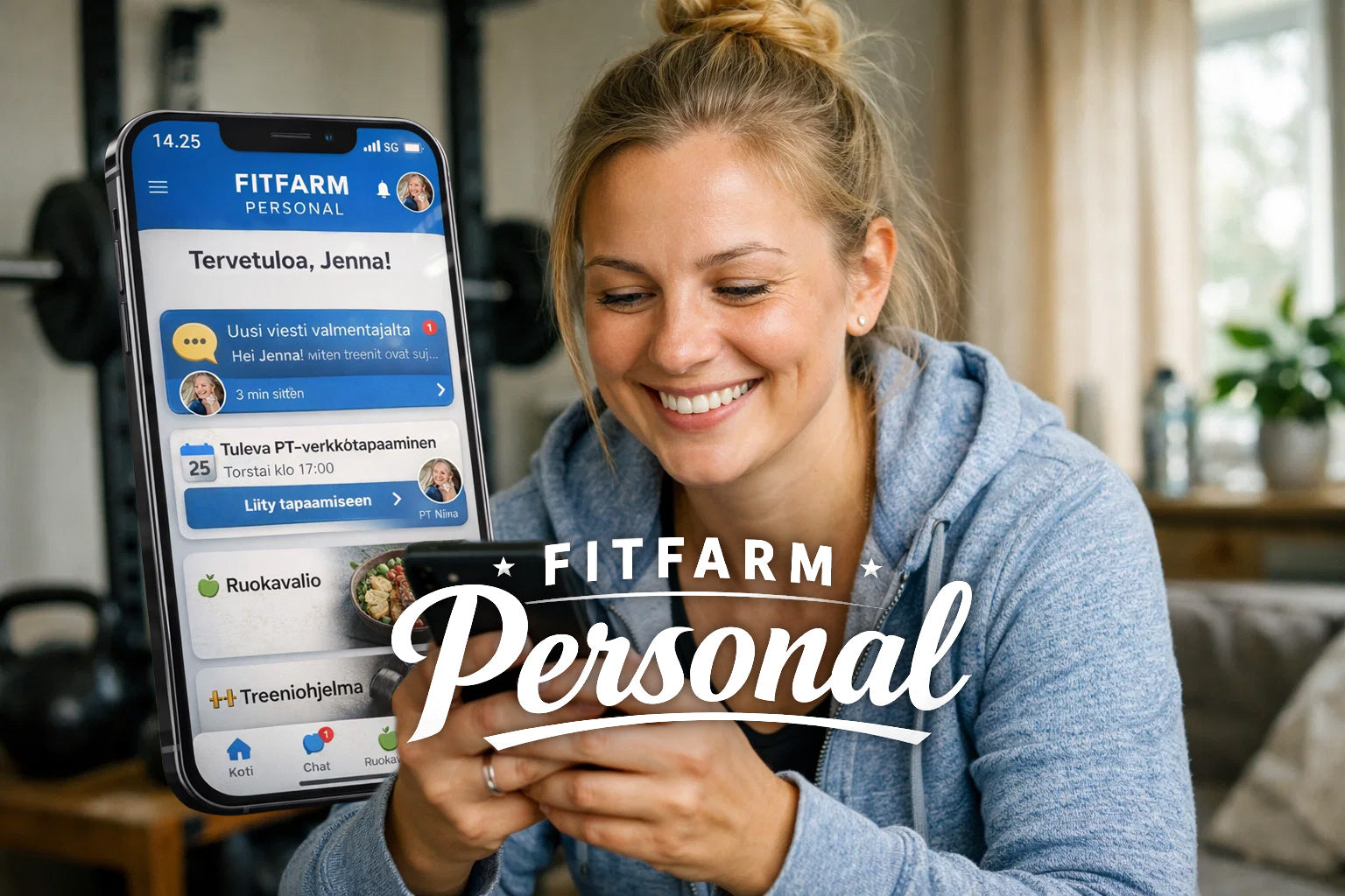 Fitfarm-sovelluksesta löydät kaikki henkilökohtaiseen valmennukseen liittyvät ominaisuudet ja sisällöt: yksilöllinen ruokavalio, treeniohjelma, chat valmentajan kanssa, edistymisen seuranta ja materiaalit. Sovellus on käytössäsi ilman lisämaksua.