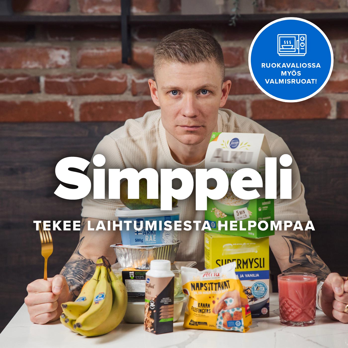 Simppeli on täysin uudenlainen ateriapohjainen ravintovalmennus, jolla pidät huolen painonhallinnasta kiireisenäkin päivänä. Voit syödä joustavasti yhden tai kaikki päivän ateriat Simppelin mukaan. Valmis ateriapankki tarjoaa vaihtoehtoja jokaiselle aterialle ja kiireen pelastavat terveystuunatut valmisateriat.