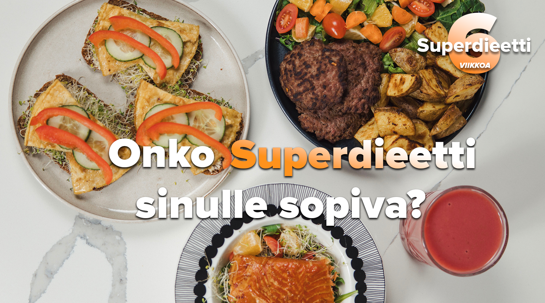 Superdieetti sisältää ruokavalioon sopivia helppoja reseptejä ja valmennuksen aikana opittuja ruokailutapoja on helppo jatkaa arjessa. Aineksiin löytyy vaihtoehtoja, joten valmennuksen ruokavaliota on mahdollista noudattaa ruoka-aineallergiat ja omat mieltymykset huomioiden.